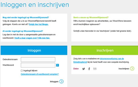 Nog niet eerder ingelogd op woonnetrijnmond. Het lukt mij niet om in te loggen. Inloggen inschrijven service en contact.